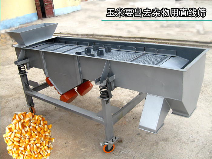 玉米在制造之前,肯定是先要进行杂物的处理和分离的,所以这就需要用到我们的筛分神器:直线筛分机了直线筛分机是利用,电机的振动带动筛网进行对物料跳跃式的筛分方式,可从重量,大小两个方面进行筛分。跳跃式的筛分能够使重量相差不大的物料进去抛起,然后利用筛网的目数的控制,进行对落下的物料进行筛分开来。这种筛分方式能够更好达到想要的筛分效果。